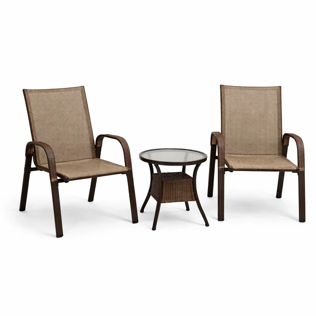 Ensemble de détente acier et résine tressée brun avec table en verre