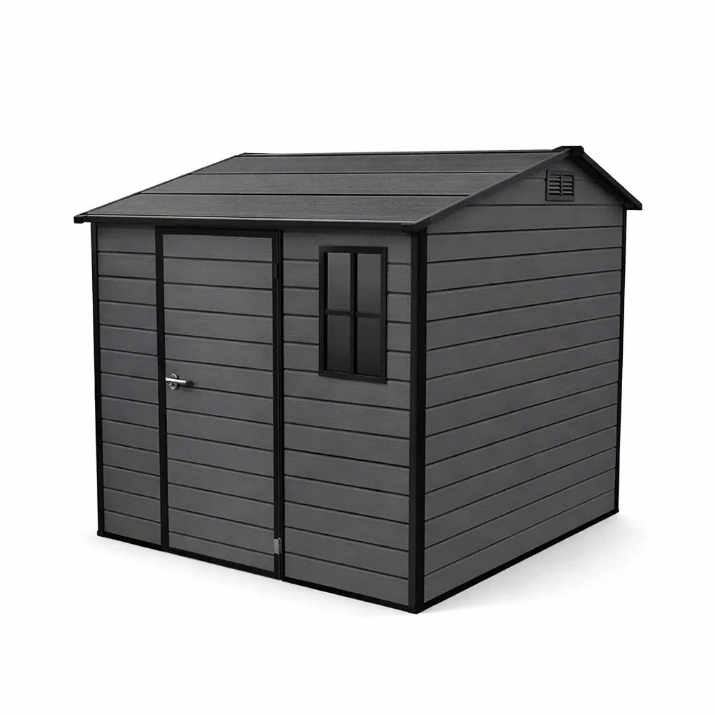 Composée de résine haute densité, cet abri est résistant aux UV et aux intempéries.